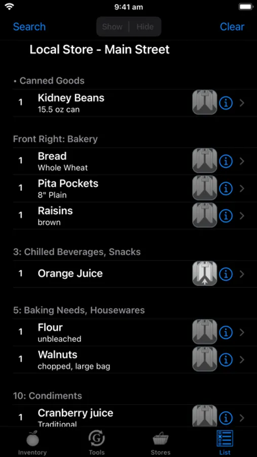 As you shop, you can easily mark off items you've collected with a single tap and hide completed items from the list so you can focus on the remaining items as your list gets shorter. Completed items can be unhidden in case you want to double-check your cart.
