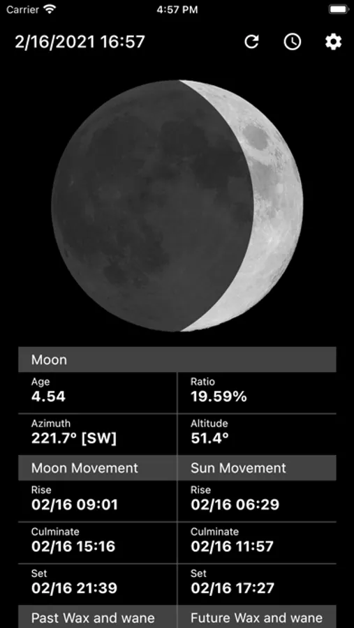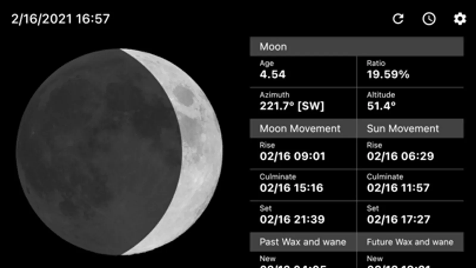 * Displays the times of the rising and setting of both the Moon and the Sun