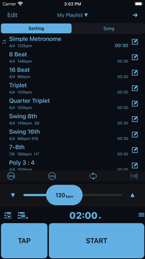• All of your settings ,including BPM and sound for each division, can be saved for later recall and stored in a playlist.