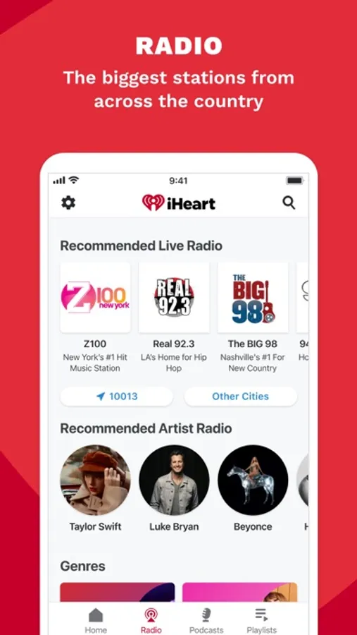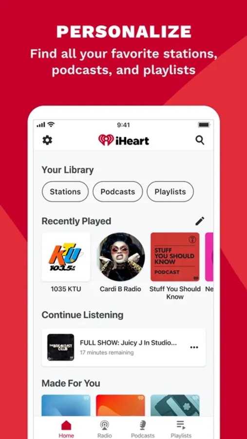 Build playlists to your liking and create personalized music stations from millions of songs covering Country, Pop, Hip Hop, R&B, Rock and so much more. Take advantage of a weekly mixtape that’s tailored to you and discover new sounds with ease — all available on the free iHeartRadio app.