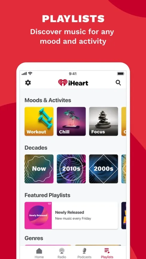 • Thousands of hand-curated playlists – organized by mood, activity, decade & genre