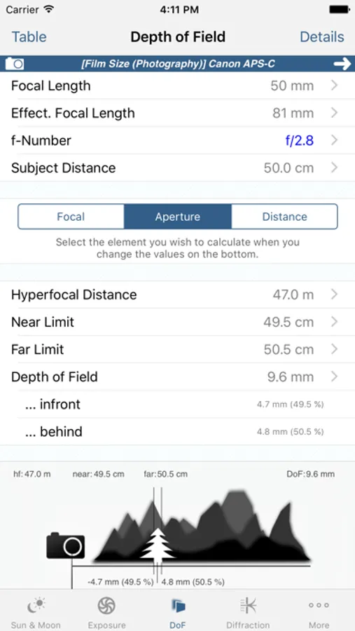 - Interactive DoF graphic (change the depth of field settings with a flick of your finger)