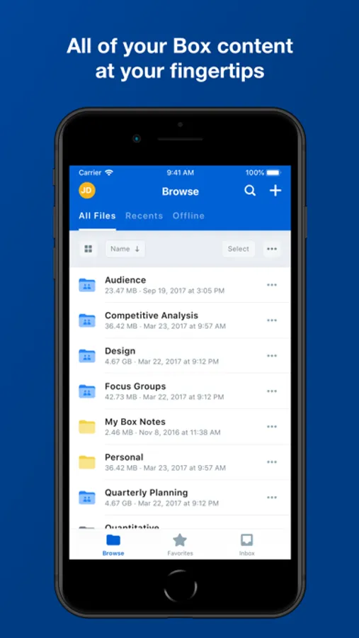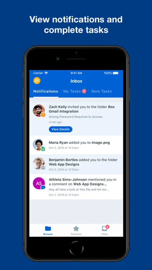 • Create Box Notes to jot down ideas, manage to-do lists, and coordinate projects in real-time