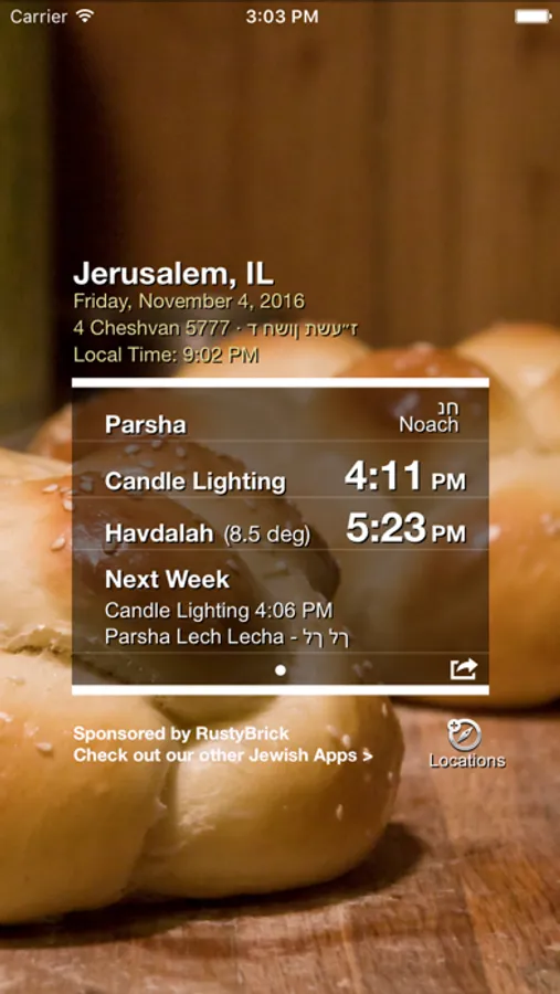 The Shabbat application will allow you to quickly check the candle lighting times, havdalah times and parsha for the week in any location in the world. This comes in handy when you quickly want to know when Shabbos is or if you want to know if it is too late to call your in-laws in Israel. Just flip through the different cities and countries, to see what the local time is and what time they start or finish Shabbos.