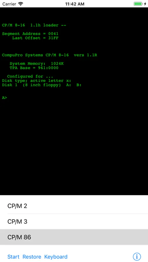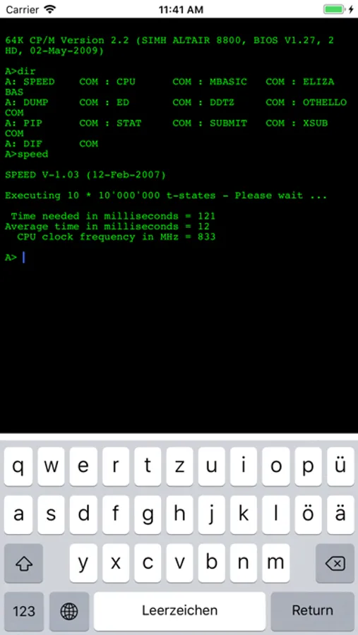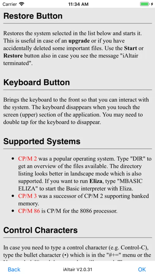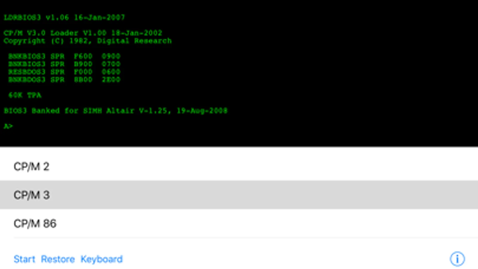 iAltair pretends to be a MITS Altair 8800 computer. It allows you to get the feeling of really old software such as the CP/M 2 operating system. The system is fully self contained and does not allow you to remotely add any code but you can try out Basic to run Eliza.