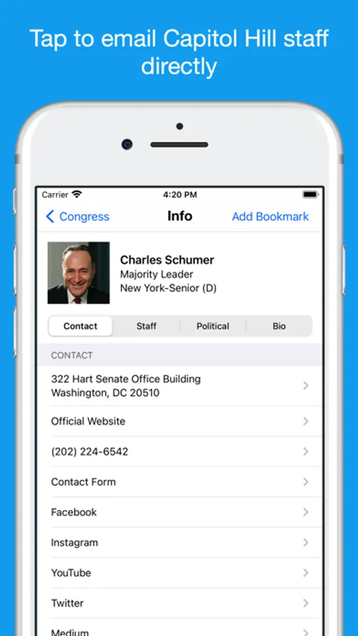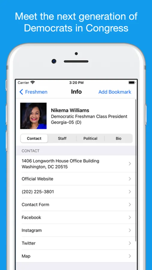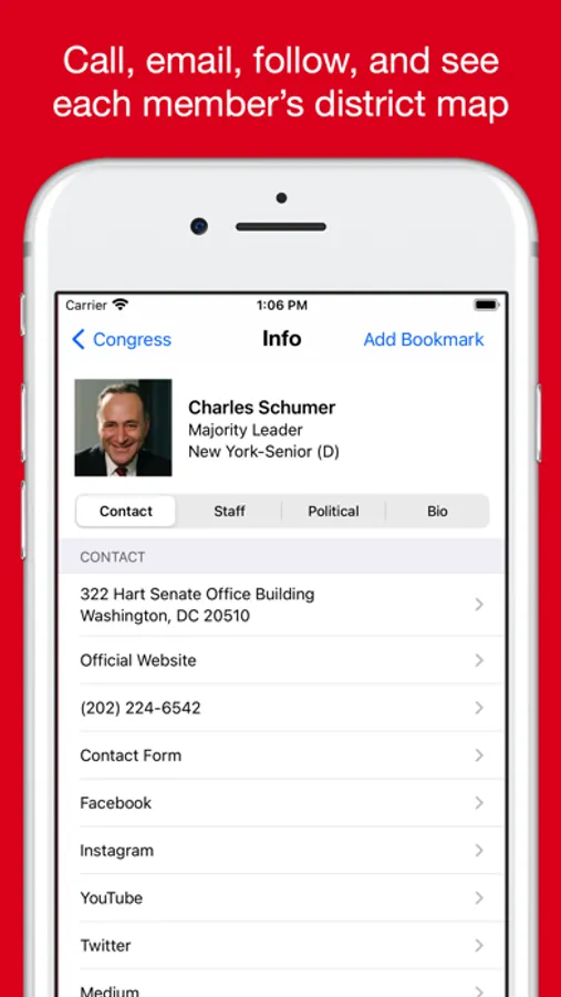 No matter who you support, you can have every member of Congress in YOUR pocket or on your iPad. Use the app that tens of thousands of people who work on the Hill and with Congress everyday, as well as their constituents have on their iPhones and iPads.