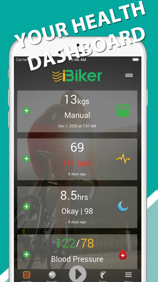 iBiker supports other activities too, like runs, elliptical, Crossfit, and more. Track all you need to keep a healthy heart, stay healthy, or lose weight, from daily steps, to hard gym, to cycling over the hills and roads.