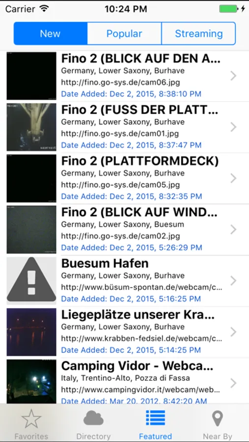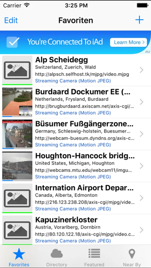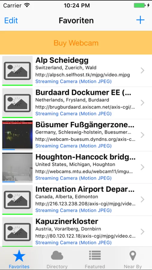 You can also use our growing directory of over 3000 webcams to find the one you like and add it to your favorites with a single tap. Additionally it is possible to browse the famous webcams.travel directory (http://webcams.travel/) with more than 12000 cameras.