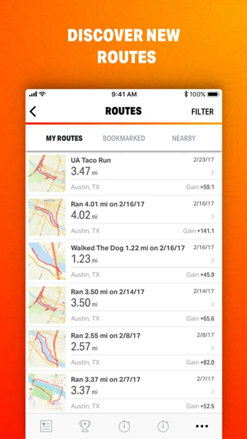 - Use the Routes feature to find nearby places to ride, save your favorite paths, add new ones and share them with others.