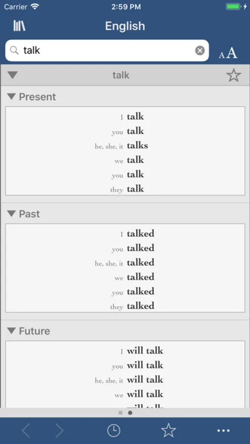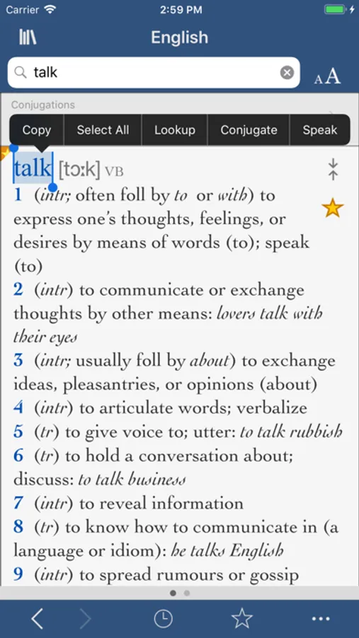 • On iPhone/iPod touch, conjugate a verb from the dictionary results by tapping it