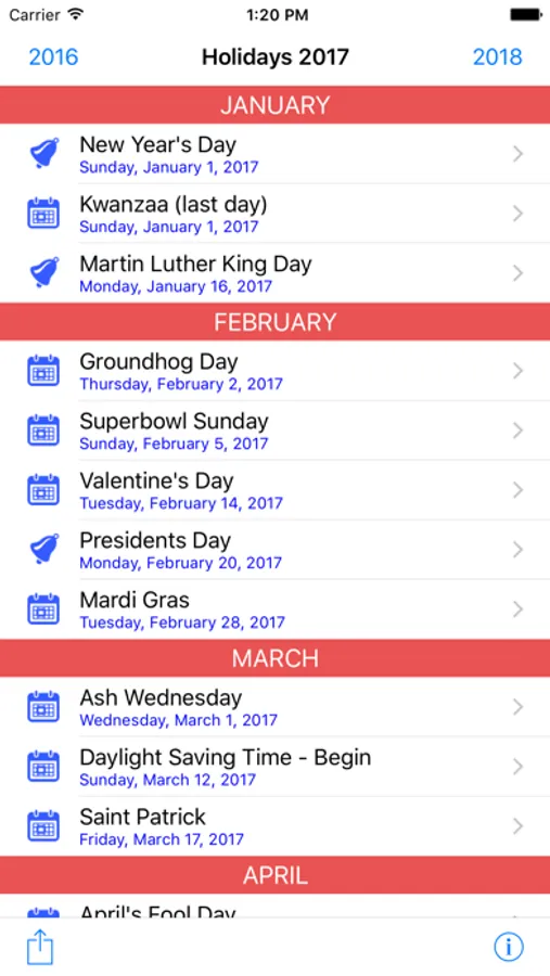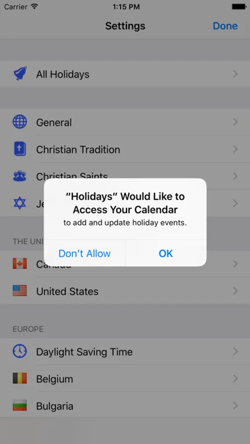 You can transfer the selected holidays directly into your active iPhone calendar: