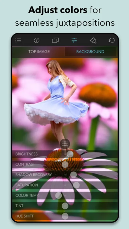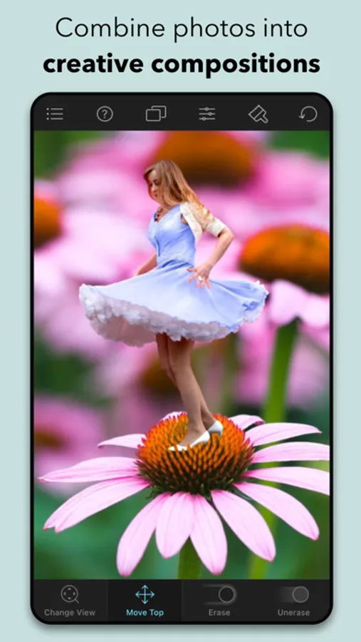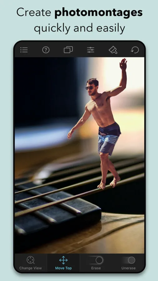 Take any element from one picture and add it to another. Remix your pets into a mythical creature, swap a statue's head with your friend's, or combine photos into surreal and beautiful works of art. Juxtaposer has the power and features of a professional creative tool, but is simple to use and just as importantly, it's fun!
