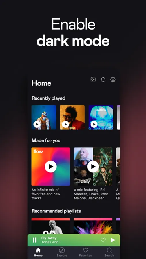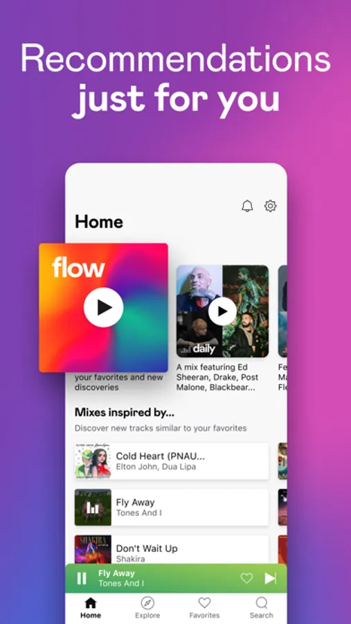 • Flow, for infinite, personalized mixes, featuring Flow genres and Flow moods for your fave sounds