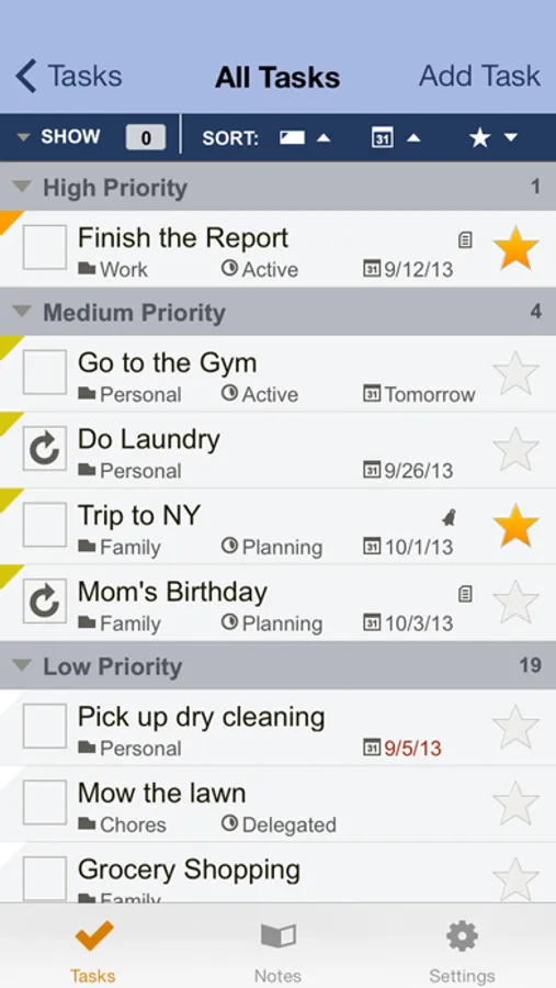 ◆ Search, filter, sort and drill down into your tasks in a variety of ways to see the subset of tasks that are useful right now and ensure that important tasks float to the top.