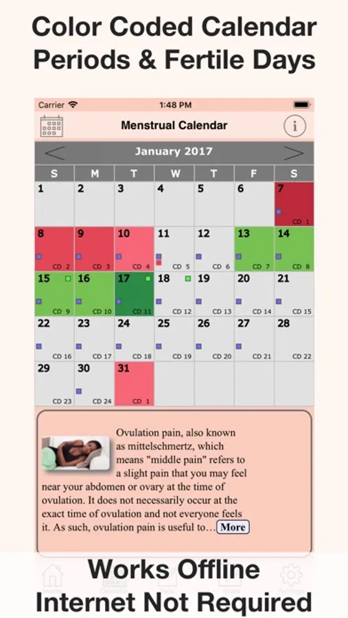 * Pregnancy Mode: View your pregnancy week, day and trimester right on FMC's calendar.