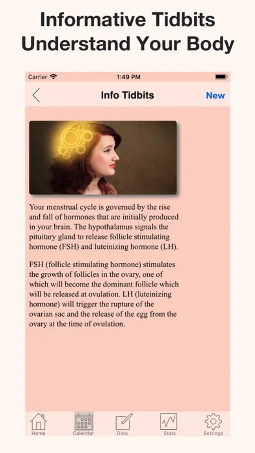 * Read educational tips and information about your menstrual cycle and your fertility signs