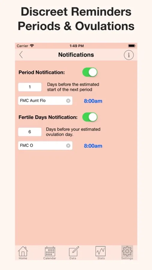 * Customize your data entry. Track what matters to you! Add/Delete items! (for example, turn off/on fertility data if you wish or track more signs and symptoms- your own or ours)