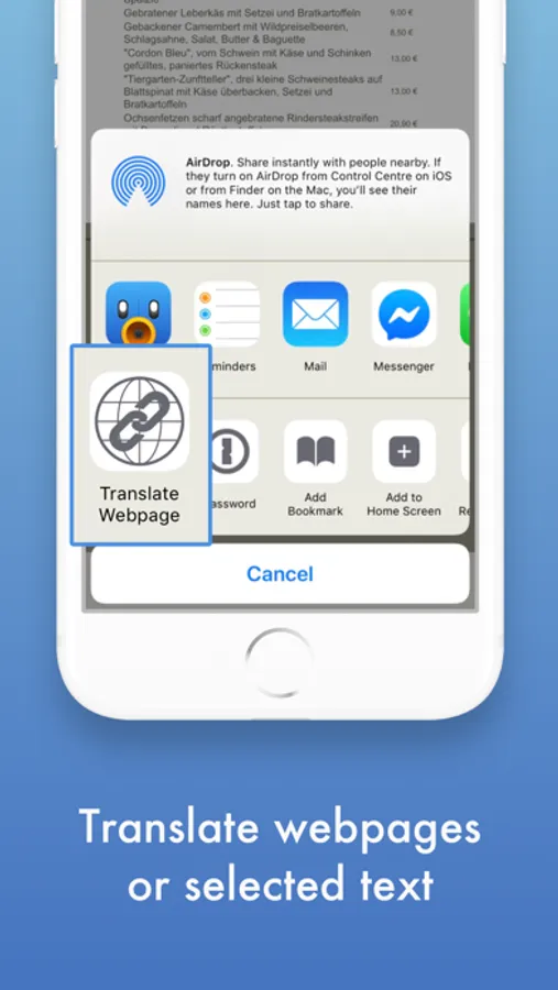 Translate is a free multi-language voice translator app. It's super easy to use and a must have for worldwide travellers, especially in Europe where numerous languages are in use in relatively small geographical areas.