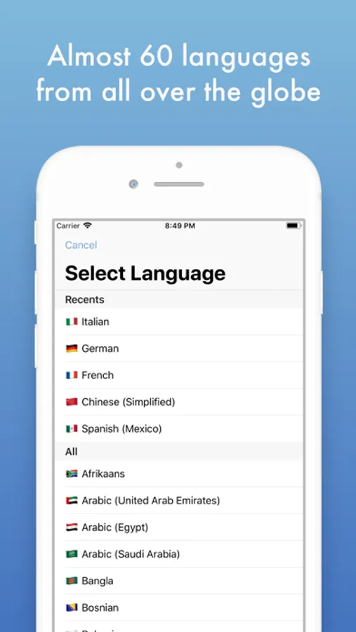Translate words and phrases between almost 60 languages. Store your translations for later use.