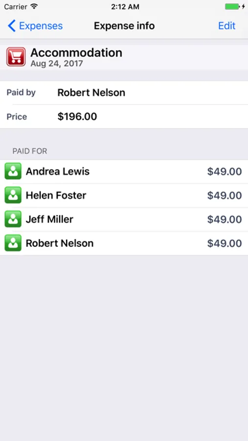 - resolutions screen automatically computing and displaying exactly who owes what to whom