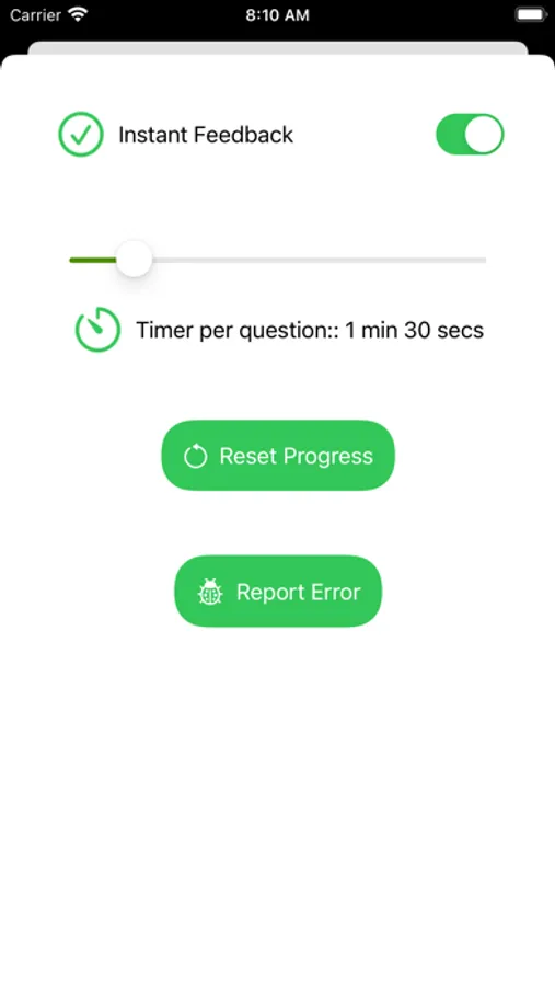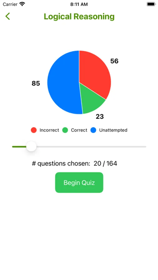 It shows you a beautifully animated bar chart so that you can track your weak areas and retry the questions you answered incorrectly.