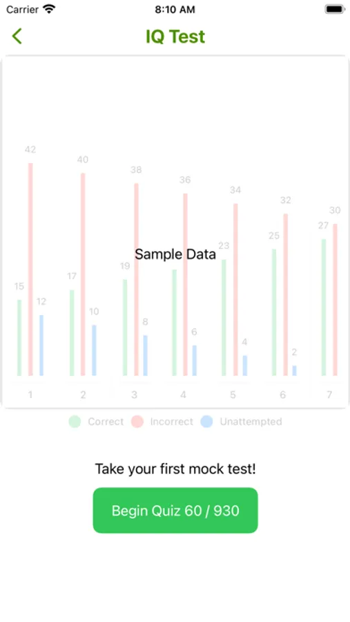 The app records your progress as you start practicing different areas of intelligence.