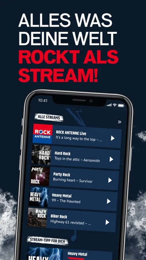 sondern nur noch die ROCK ANTENNE App - mit aktuellen, handverlesenen Playlists und immer den