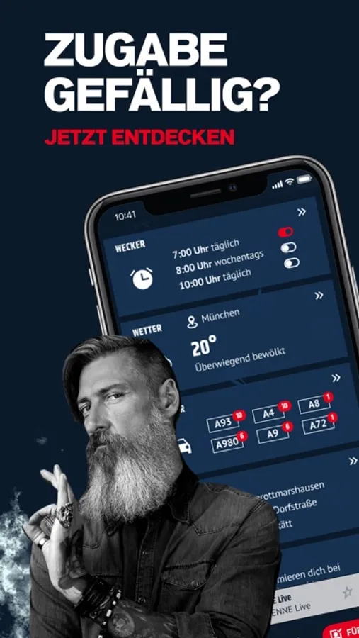 • Zugabe gefällig? Erhalte aktuelle Wettermeldungen und Verkehrsinformationen für jeden Ort
