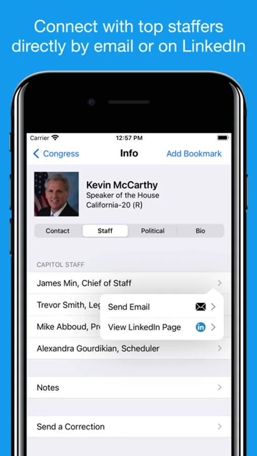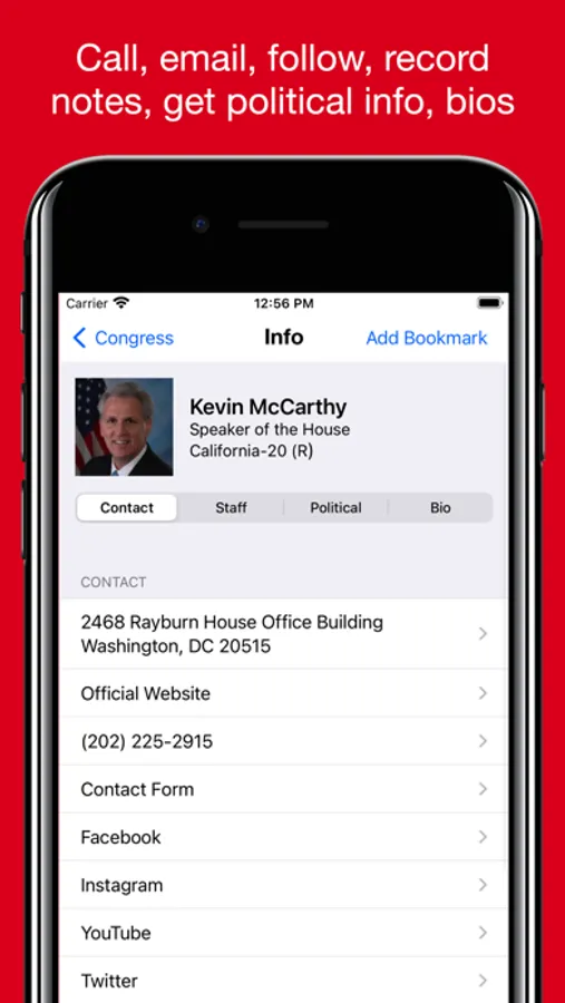 Get the app members of Congress and their staff, pros and activists, rely on to engage on Capitol Hill. With your paid monthly subscription, this app updates every time you use it so you'll always get the very best information we have. In addition to having the most complete mobile directory of members and committees available, you'll be able to track legislation and your interactions with Congress like never before.