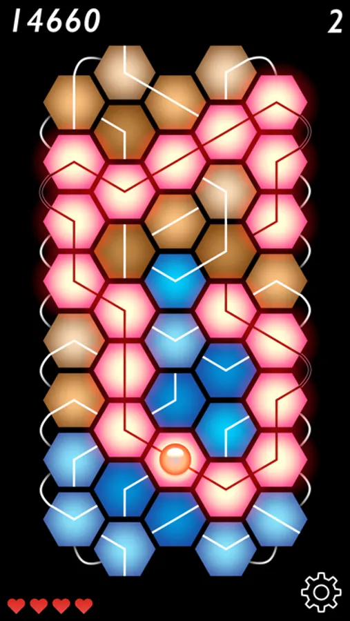 Twist the hexagons to make a complete path that includes a pulsing gem. It looks simple, but it's quietly fiendish. The longer the path, the more points you score, but if you take too long, the gem will overload in a ball of fire!
