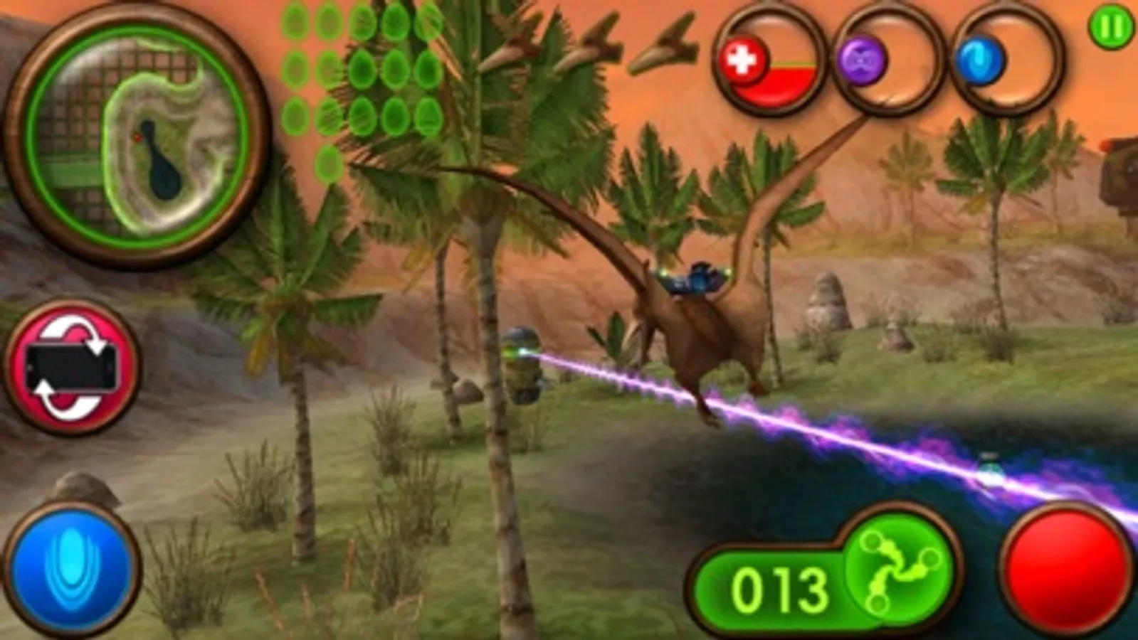 Nanosaur 2 will blow your mind as you blow things up! Pilot a flying dinosaur from the future who is equipped with massive firepower! Your goal is to find and retrieve the missing dinosaur eggs, and to do that you'll have to blow up a whole lotta stuff! You'll battle other Nanosaurs and their defense systems, and collect powerups which give you a large array of weaponry ranging from heat seeking missiles to cluster bombs. It's a dinosaur flight simulator!