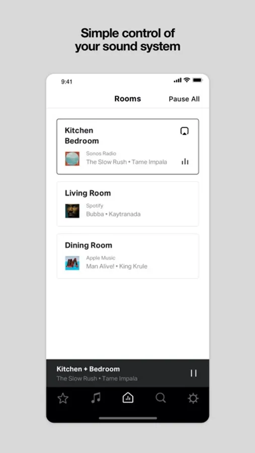 In this app, you can control Sonos systems, adjust volume, group rooms, and save favorites. Includes streaming service integration and access to Sonos Radio stations.