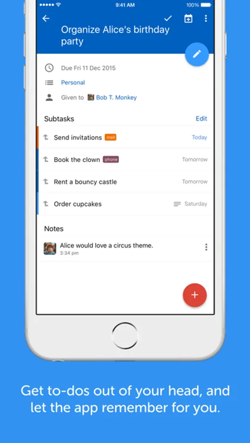• Get to-dos out of your head, and let the app remember for you