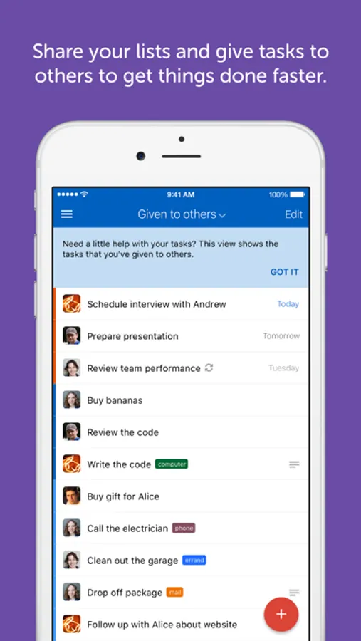 • Share your lists and give tasks to others to get things done faster
