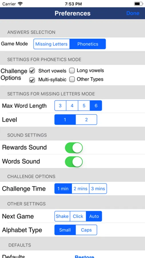 - After every 5 successive correct answers different colored stars appear as their rewards. Kids love this.