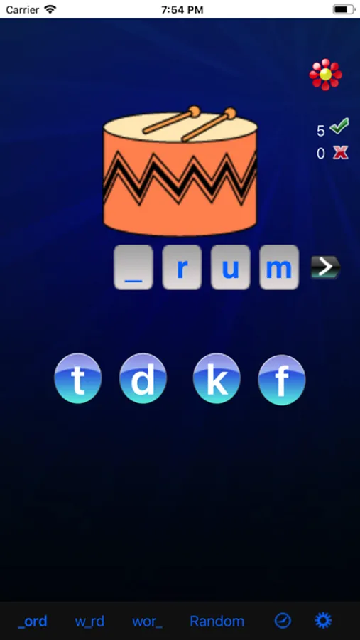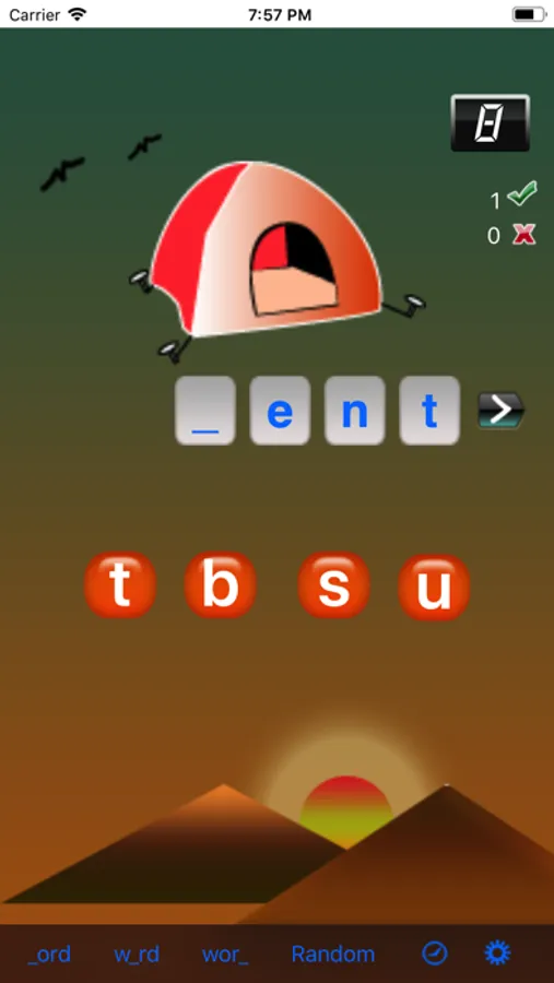 A picture is shown and the kids should select the missing letter for the picture. The picture for the word will be read out. There are three flavors. Based on the kids level, you can choose missing letter at the beginning or in the middle or in the last.