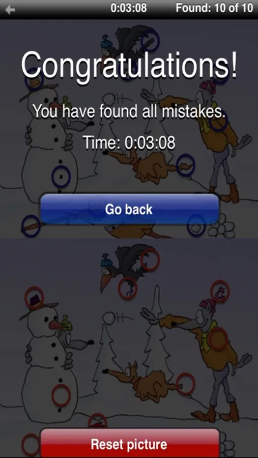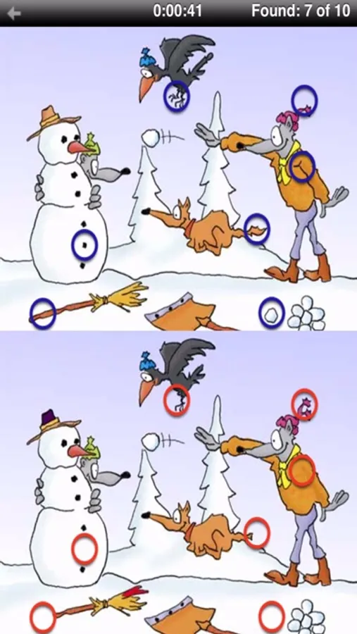In this game you see two pictures with slight differences. Your job is to spot the ten differences between these two pictures. You can mark the differences in both pictures with one touch – and a circle around the spot will show you which difference you already found.