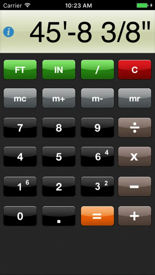 If you are a builder, contractor, sub-contractor, architect, engineer, artist, designer, student, homemaker or DIYer, you know the importance of working with accurate dimensions. inchCALC™ tranforms your iPhone / iPod Touch into an easy to use FT• IN• FRACTION construction calculator that inputs and outputs dimensions exactly as they appear on a tape measure.