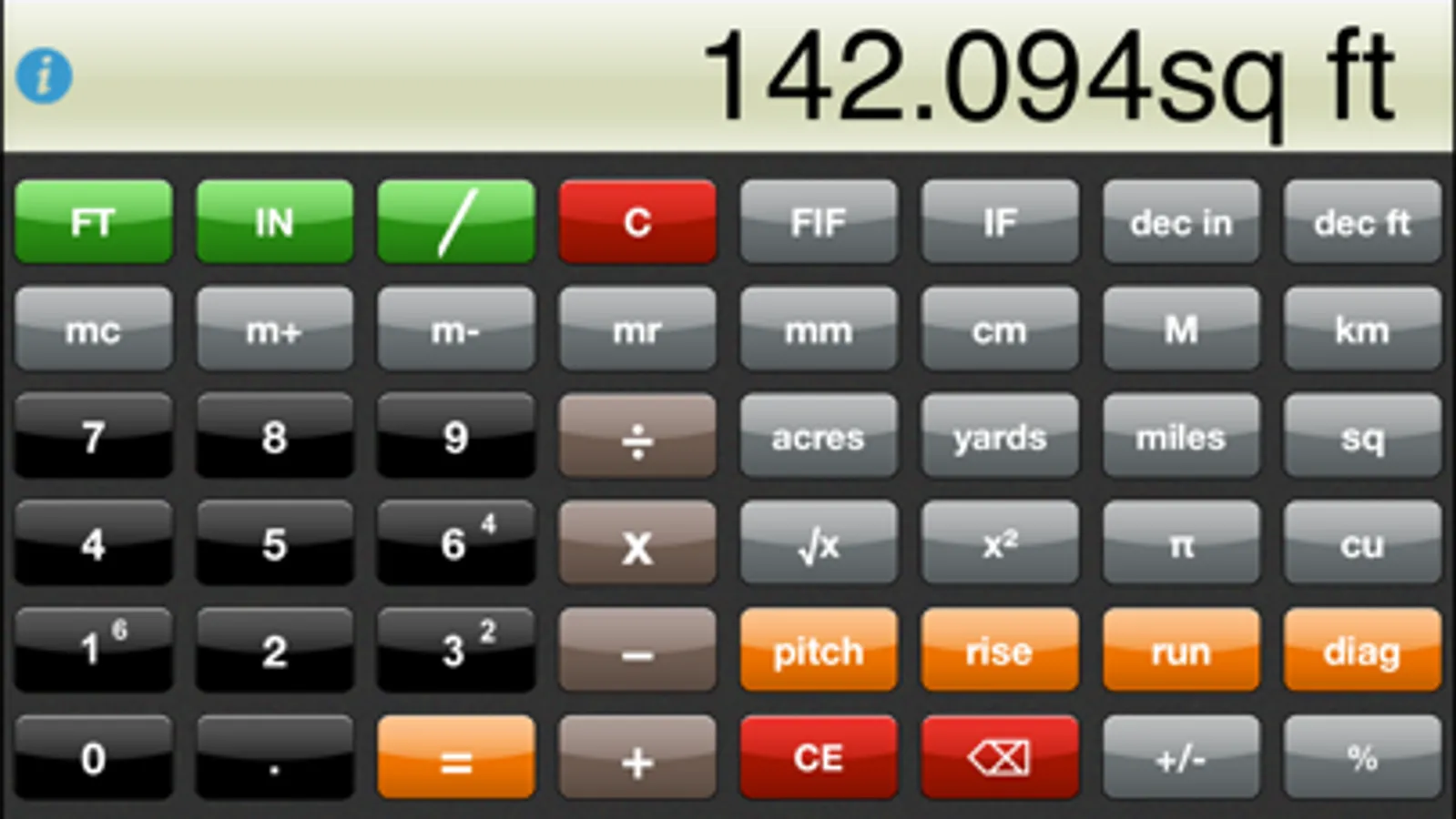 PRO LEVEL [FOOT • INCH • FRACTION] CALCULATOR