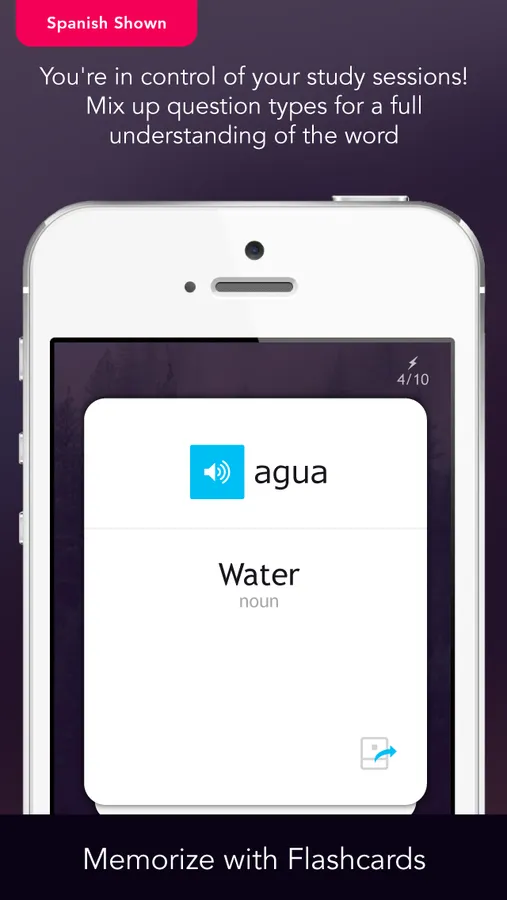 - Custom Flashcard Settings: You're in control of your study sessions. Mix up question types (recognition, production, audio and visual) for a full understanding of each word