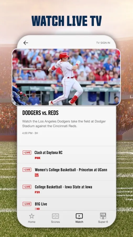 • CATCH ALL THE ACTION—LIVE: Get every FOX Sports game and studio show right at your fingertips, exclusively for TV subscribers. Experience the thrill of NFL, MLB, MLS, NASCAR, college football, Big Ten, Big 12, Big East, Pac-12, and WWE SmackDown, along with other must-see events, including tennis, rugby, and more.