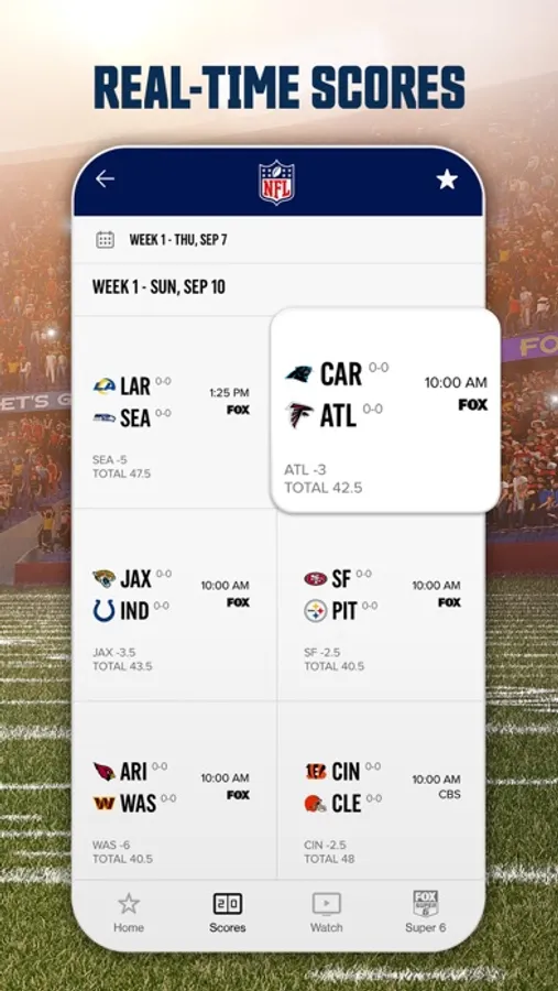 It’s game on with the FOX Sports App! Designed for sports lovers everywhere, you can stay connected to your favorite teams and games—from the NFL and College Football to MLB to NASCAR and more—with live matches and real-time scores. You can also read top stories, view betting odds, receive customized alerts, and much more! Download the FOX Sports App, or visit FOXSports.com.