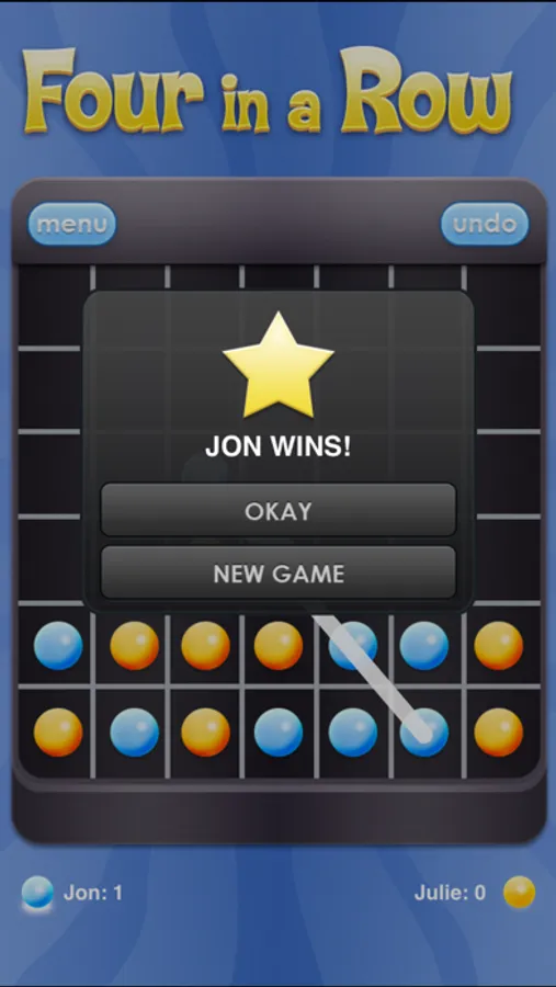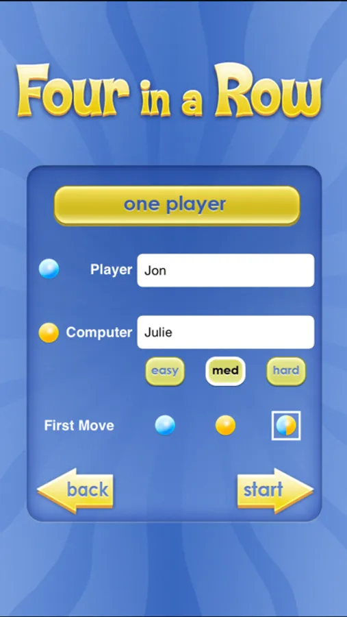 Four in a Row Pro supports one player and two player gameplay, so you can play against another human or against your iPhone.