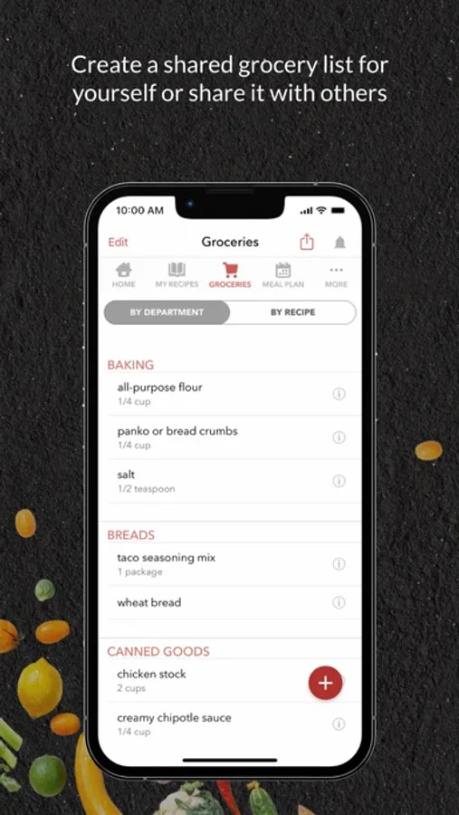 Plan ahead with the Meal Planner tool and leave the stress of deciding what to eat behind. Easily add recipes to your planner and recipe items to your grocery list with the tap of a button. Plan weekly, daily, or monthly meals to stay organized and share your plan with friends and family.