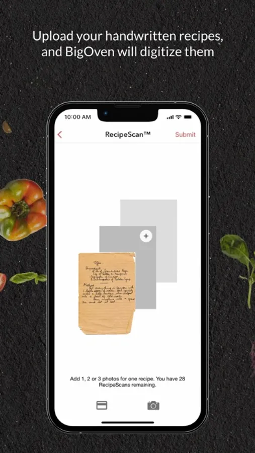 Get the most out of our ultimate home cooking tool by going Pro. Enjoy an ad-free experience and find recipes that cater to your diet and lifestyle with ingredient-by-ingredient Nutrition Insight and advanced search filters. Create custom folders to store recipes for any occasion. Plan a week's worth of meals and share it across multiple BigOven accounts. Upload an unlimited number of recipes and unlock 25 RecipeScan credits.