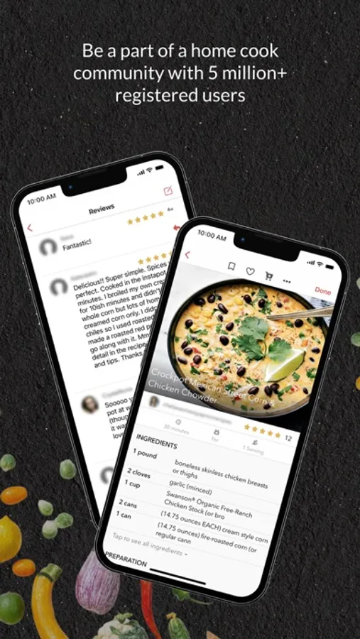 Be a part of a home cook community that loves to be in the kitchen just as much as you do. Read reviews left by others, get notified of comments or questions on recipes you've posted, and find other family and friends and their recipes on your home screen.