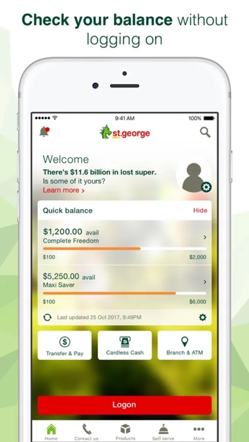 • Cardless Cash - withdraw up to $1,000 without your debit card from any St.George, Bank of Melbourne, BankSA or Westpac ATM