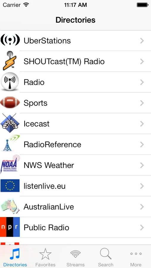 Includes all your favorite iTunes stations and Dynamic directory provides for adding new directories and stations from our servers with no need for an application update.