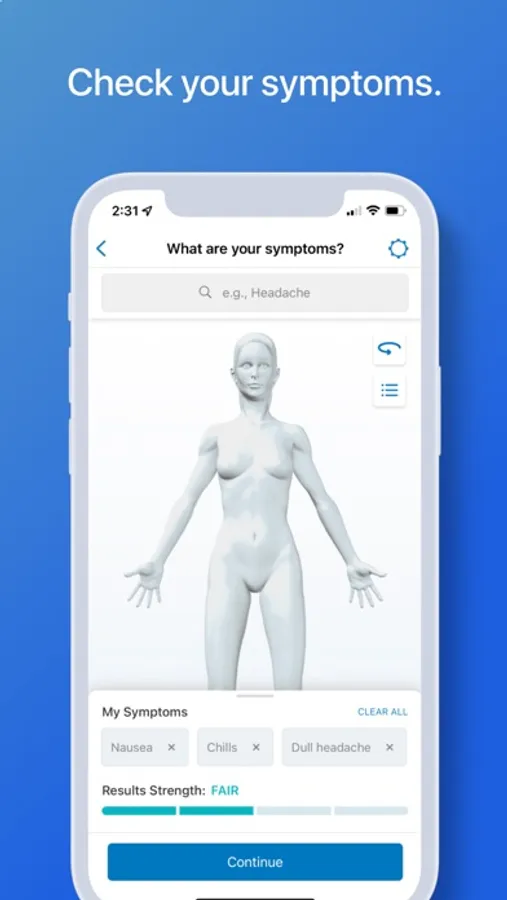 • Symptom Checker – Choose your symptoms, learn about potential conditions or issues, and lookup treatment and care options.