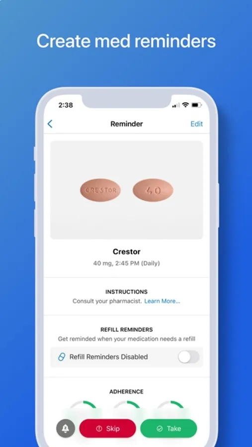 • Medication Reminders – Never miss a dose. You’ll receive reminders when it’s time to take your medications. View daily prescription schedules and instructions, plus pill images with dosage and timing information for each drug. Reminders sync to your other mobile devices when you sign-in with your WebMD account.